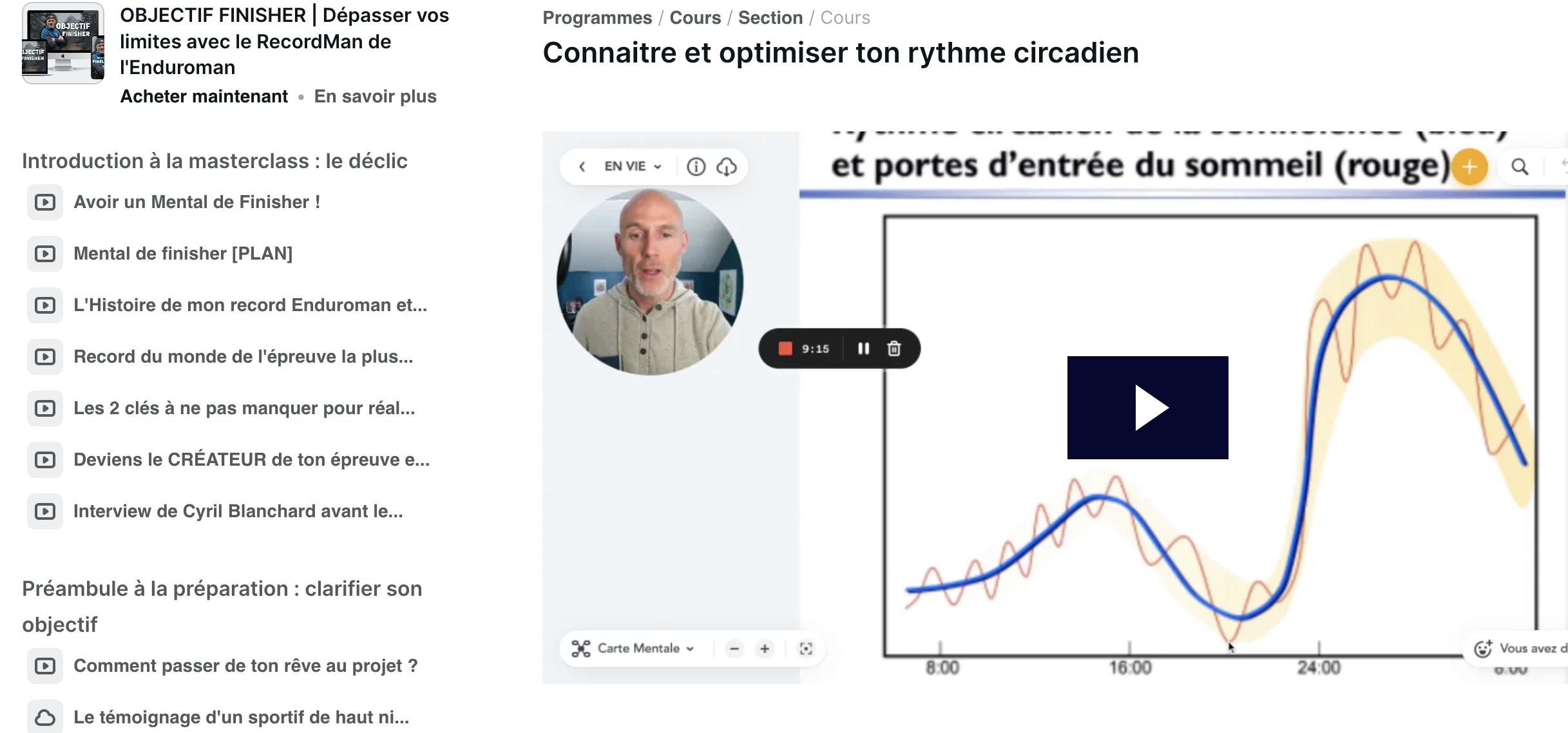Près de 10 heures de cours pour te révéler les secrets de ma préparation mentale sur l'Enduroman et celle des athlètes que j'ai accompagnés vers leur exploit personnel.